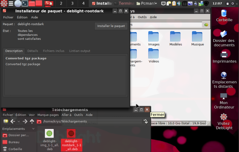 Maintenant on fait un simple double clique sur le fichier "deblight-rootdark-1_1-1_all.deb" que l'on vient de télécharger :