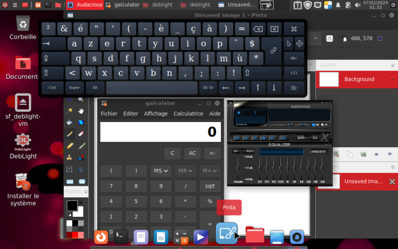 Encore Audacious, Galculator (calculatrice) Pinta (Paint-net), OnBoard (clavier virtuel) |