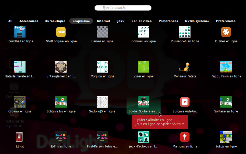 Le menu avec des icônes surnommé : Menu DebLight |