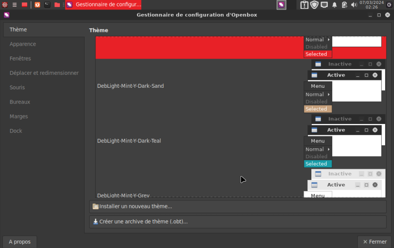 Le gestionnaire de configuration, c'est ici qu'on change de thèmes |