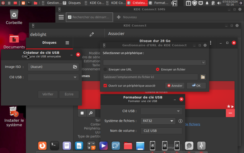 KDE connect (pour téléphones), Formateur & Créateur de clé USB |