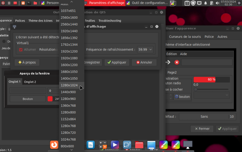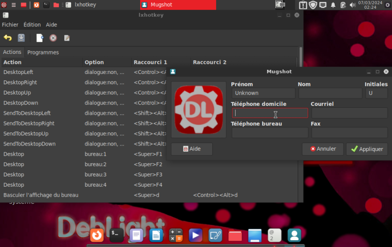 réglages DebLight OS : taille écran, le look...
