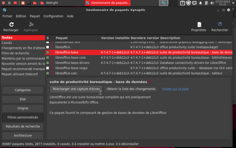 Synaptic : qui permet d'ajouter et de supprimer des logiciels