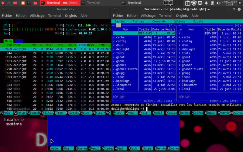 Programmes Terminal : Htop, MC = Midnight Commander
