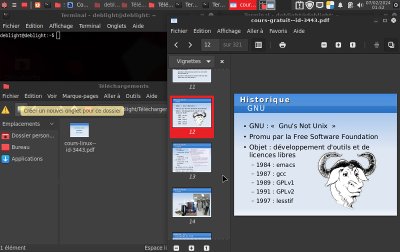 Terminal, PCManFM, Xreader (visionneuse PDF)