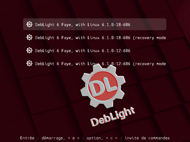 Le GRUB : choix au démarrage |