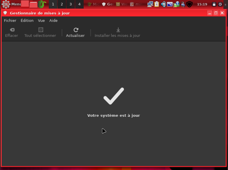Le gestionnaire de mises à jour 3/3 Le système est à jour |