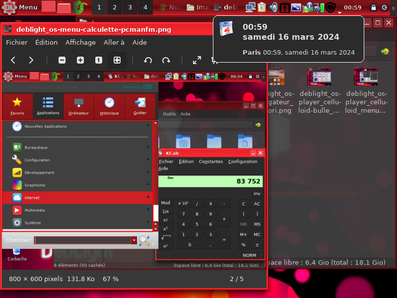 Le Kmenu, Kcalc (calculette), PCManFM |